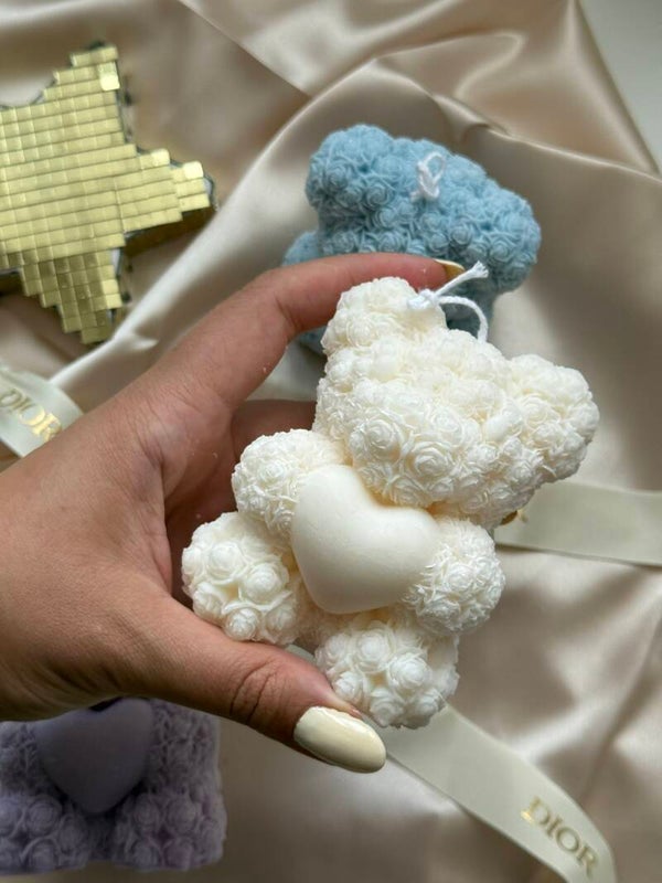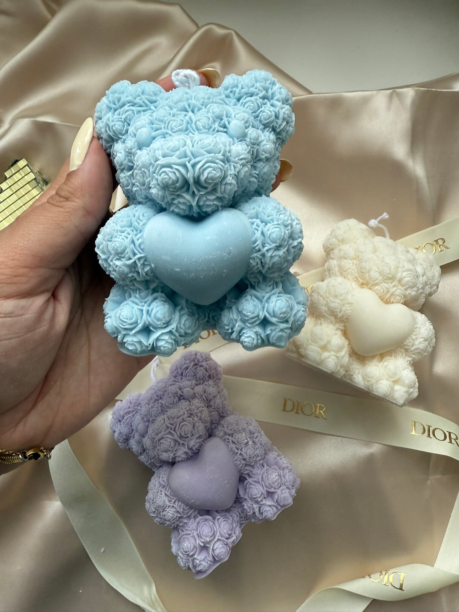 đ¸ Teddy Candle | Flower and Heart Teddy Bear Candle | Teddybär-Kerzen